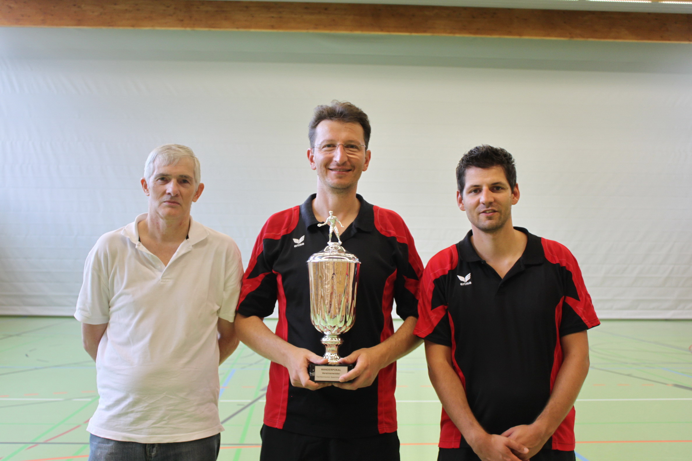 Nur 12 Teilnehmer fanden am Samstag den Weg in die Spaichinger Rupert-Mayer-Schulturnhalle. Von der ersten Mannschaft waren nur Mahmut Hadzihasanovic, Heiko Paitz und Neuzugang Walter Kästle mit dabei, von der zweiten Mannschaft waren immerhin vier Spieler am Start. Erstmals wurden die Titelkämpfe in zwei Leistungsgruppen durchgeführt, so das bei den Herren A sechs Teilnehmer und bei den Herren B auch sechs Teilnehmer mit dabei waren. Es wurde im Modus jeder gegen jeden gespielt. Bei den Herren A blieben Titelverteidiger Heiko Paitz und Mahmut Hadzihasanovic bis zum entscheidenden letzten Einzel ungeschlagen. Mahmut Hadzihasanovic zeigte gegen Heiko Paitz eine beachtliche Frühform und konnte das Spiel mit 3:1 zu seinen Gunsten entscheiden und sicherte sich damit verdient den Titel. Dritter wurde mit 3:2 Spielen Walter Kästle vor Jochen Hamma (2:3)